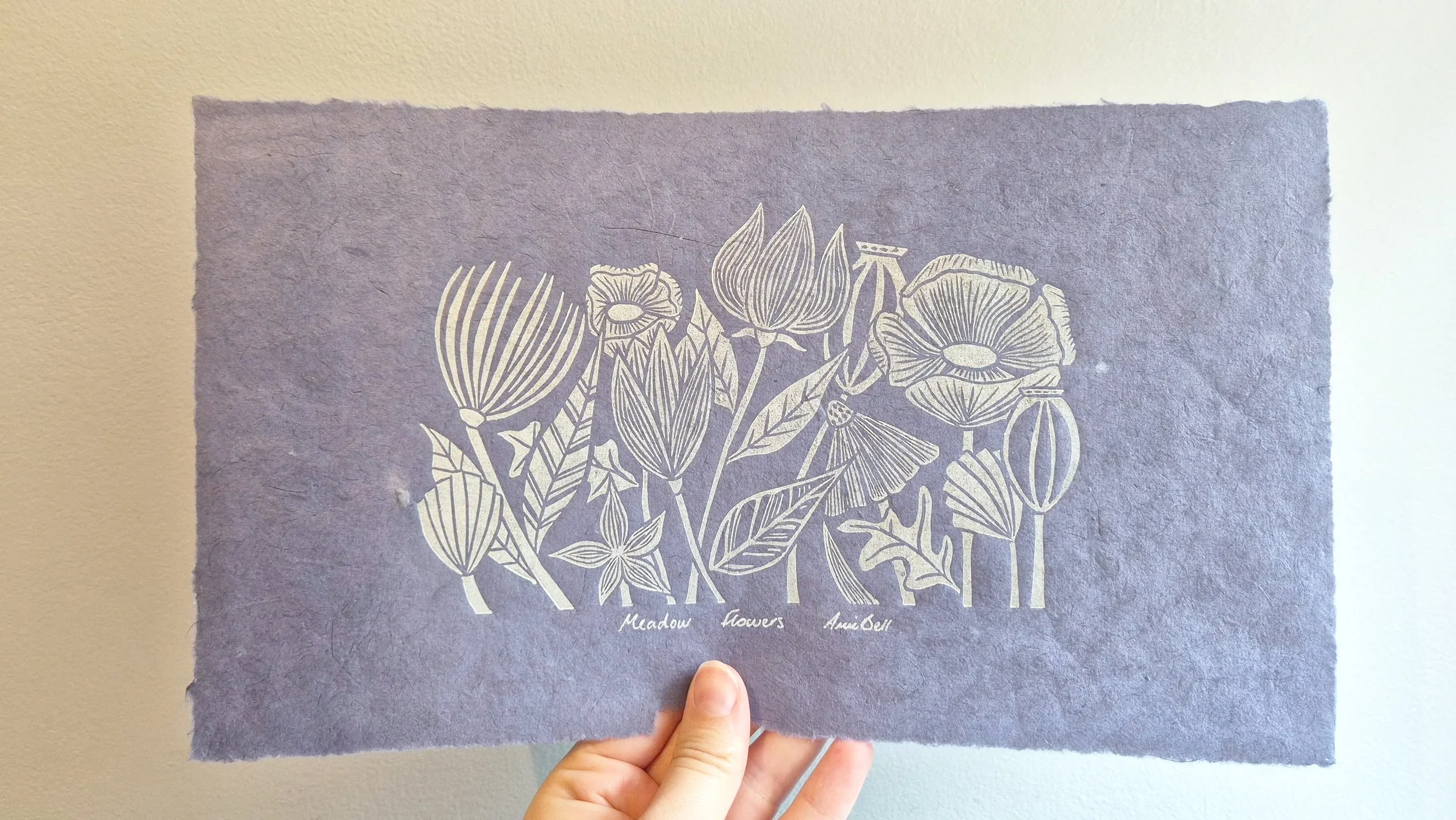 Hand-carved and hand-pressed lino print
